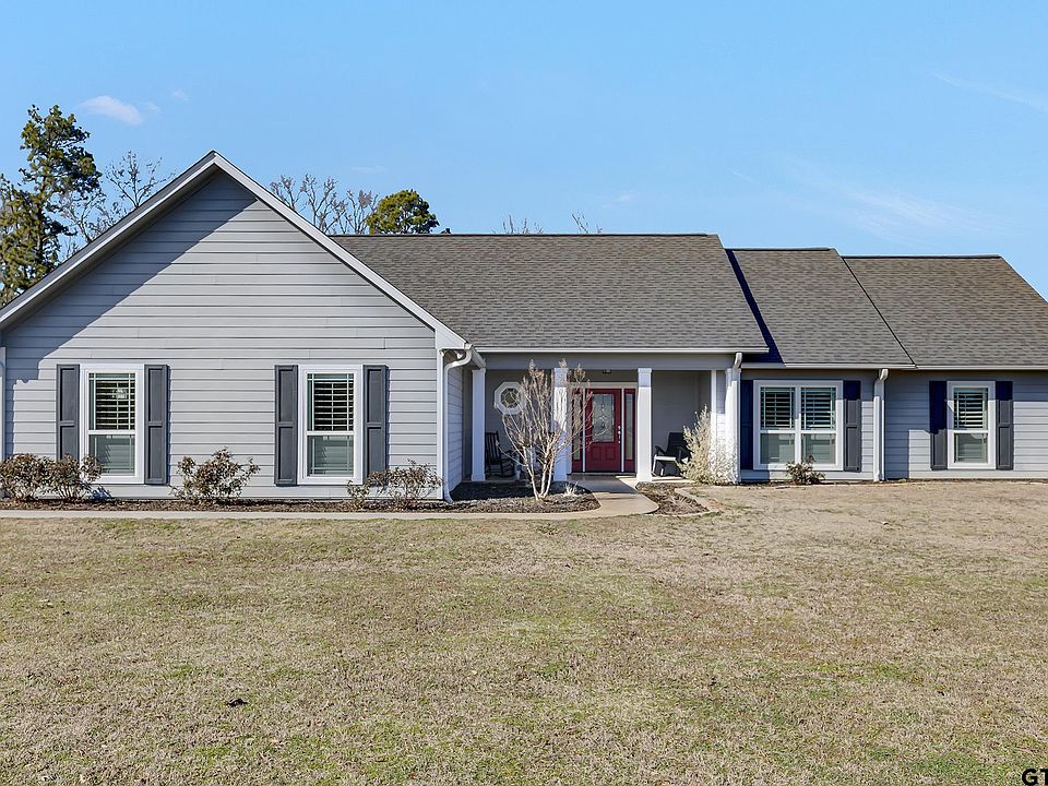 This is an East Texas Gem! Beautiful 2016 custom built 1800+ sqft, 3-2-2 home with office and shop. Home and grounds are immaculately cared for and maintained and sit at the end of a 570' concrete driveway that leads you through the security gate off of HWY 155’. The interior of the home is designed comfortably with split primary, plenty of closet space, and a large pantry. The oversized garage and garage doors are well set up for storage with a sink area and built-in shelving along the back. This is the ideal setup for a small family or retired folks looking to get away from town, but not too far, as it’s only 3 miles from the middle of Linden. The 20x40 insulated, heated/cooled shop is fantastic for the wood-working enthusiast, practicing mechanic, or countless other hobbies. In fact, there's a custom black walnut barn door inside the home that was hand crafted by the current owner in the workshop. The property is surrounded by timber and pasture so it is quite isolated, even though its on HWY 155. The big part of the property north of the home has over 30 black walnut trees and numerous oak species planted and cared for that will grow into a beautiful stand of hardwoods. White tailed deer and hogs roam through the property periodically, and ducks and Canada Geese call the adjacent pond home. Spend the day working in the shop or tending to farm-life; growing your own vegetables in the raised bed garden (constructed to exclude wildlife pests) and tending to your livestock and chickens to fully live off the land. Unwind in the evenings on the screened-in back porch or out by the firepit soaking in the sunset! Don’t miss this fantastic opportunity to own a beautiful East Texas property!