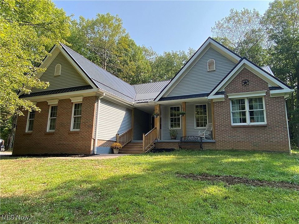 Spacious brick and vinyl sided Modern Ranch!! Secluded 10 acres that gives you a private and park like setting. Owners purchased in 2022 and have made loads of upgrades which includes new vinyl siding in the back, metal roof, new gutters, down spouts and drain tile. Basement was water proofed previously by Ohio State water proofing. Driveway maintenance and new culvert. (2) new water heaters & water softener. New furnace and AC, electric sub panel for extra garage 2 car garage... New ceiling fan, chandelier and outside tree removal. All EXPENSIVE upgrades. A front door entry greats you into a Great room which features a stone wood burning fireplace and vaulted ceiling with massive barn ceiling fan...kitchen and formal dining are to the left of the great room. Kitchen area includes all appliances and eating area and a first floor laundry room. Dining room is located in the back that looks over the yard and woods. This home features 3 bedrooms and an additional room the is used as an office area, but a nursery, library, reading, TV area for the the primary are other options. Primary bath includes separate shower, water closet, double sinks and a walk in closet. Full bath is located closes to the other 2 bedrooms. Full finished basement with ceramic flooring includes pool table, a bar with stools, a table & chairs and refrigerator. Loads of space for kids games with friends. Additional 2 car garage for the car buff or the carpenter in your life. Sellers have moved most furnishings preparing for their move. This home is waiting for your finishing touches to make it your own. United school district.