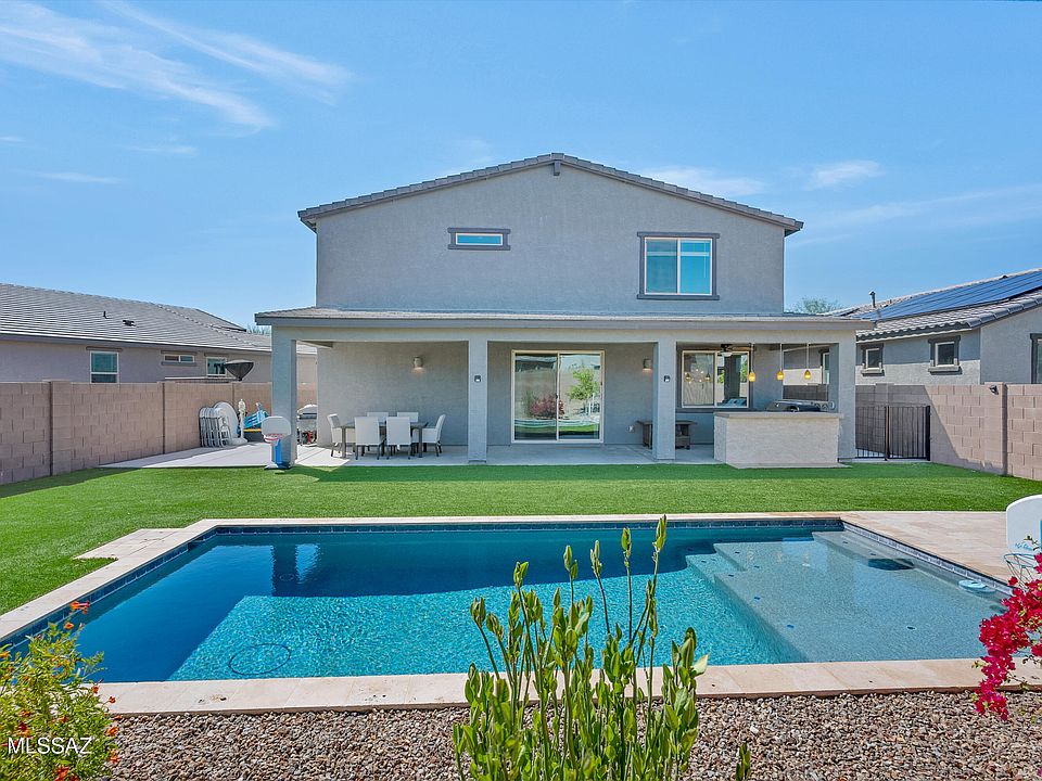 North-facing backyard oasis with mountain views, pool, and a built-in outdoor kitchen--perfect for entertaining or unwinding under the stars. Upstairs, a spacious game room sets the stage for movie nights and fun, while the adjacent owner's suite features a spa-inspired bath and an impressive walk-in closet. Downstairs, the gourmet kitchen with a large center island anchors the bright, open-concept living area. Love where you live at Saguaros Viejos. Let your four-legged friend roam at the nearby one-acre dog park, or explore miles of scenic parks and trails ideal for hiking and biking. Nestled between the Catalina and Tortolita Mountains, this home offers peace of mind and tranquility.