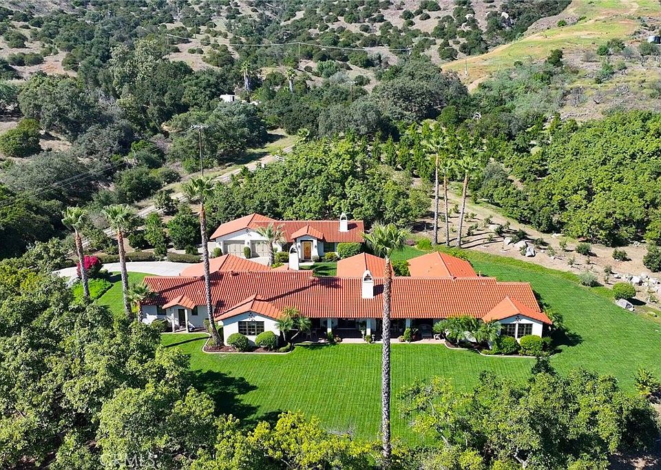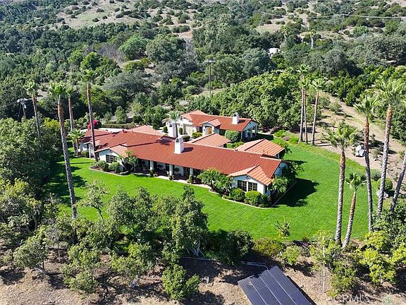 HUGE OPPORTUNITY- AND YOU DON'T NEED TO BE A VET TO ASSUME THIS VA LOAN AT 2.25%! EXQUISITE Single-Story Hacienda Style home nestled in the picturesque De Luz area, offering a serene and luxurious lifestyle on 11.96 sprawling acres. This property is a TRUE paradise, boasting a meticulously maintained Primitivo varietal vineyard and charming guest house. Step into the main house and notice the stunning floor plan- an ENTERTAINER'S DREAM- with an open Living room~ dining room concept where the warm tones seamlessly blend with the natural surroundings visible through 4 sets of French doors opening to MASSIVE terrace. Just off the living room a library suited for the book connoisseur. The heart of the home is the gourmet kitchen, a culinary enthusiast's dream featuring top-of-the-line Viking appliances. Whether a cozy family dinner or a GRAND soirée, this kitchen is fully equipped to cater to your every culinary desire. The main house is comprised of TWO spacious suites designed to provide comfort and tranquility. The Master Bedroom offers a separate en-suite perfect for a nursery or office and opens to the terrace. Master suite also offers an oversized luxurious bathroom, offering an oasis of privacy and relaxation. The Junior suite boasts a large seating area as well as a separate private bathroom. The powder room is elegantly appointed, ensuring guests enjoy the utmost in sophistication. As you step outside through the French doors just off the dining area, a sprawling outdoor haven awaits just across the pool sized yard. The VINEYARD, a labor of love, graces the landscape and offers not only a visual feast but also the potential for crafting your own wines. The gentle rustling of leaves and the sweet fragrance from the family orchard create an enchanting atmosphere, making it an ideal space for leisurely strolls or al fresco gatherings. The guest house is a delightful gem of its own, offering a perfect blend of comfort and independence. This retreat ensures your guests feel welcomed while maintaining their privacy. Whether utilized as an in-law suite, artist's studio, office or income producing rental, the possibilities are endless. The property is adorned with Avocado Trees as well as Golden Nuggets Mandarins. In the De Luz area, where nature's beauty unfolds in every direction, this property stands as a testament to the harmonious coexistence of luxury and nature. Home features paid off solar-with 16 double sided panels.