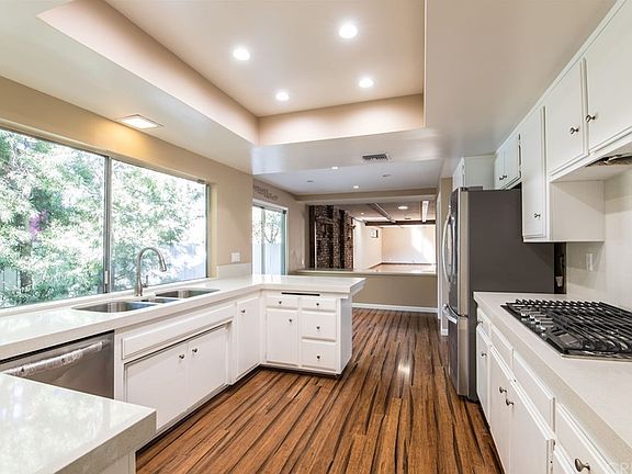 Welcome to this beautifully updated Mulwood one story pool home in one of the neighborhood's streets on a pristine quiet cul-de-sac! Terrific open entertainer's floor plan. When you enter the double door formal entry you immediately will enjoy the over sized rooms that makes this one perfect for the family. The remodeled kitchen features all stainless steel appliances, stainless double sinks, breakfast bar and eat in area that opens to the huge family, dining, and living rooms...with vaulted beamed ceilings!. The brick faced wood burning fireplace also gives this one that extra great feel that allows for total enjoyment and relaxation. There are five bedrooms and the master has a nice sized walk-in closets and private bath. The other bedrooms are nice size with terrific closets and custom built-ins. Floors are a wood laminate. The master features a sliding glass door and plantation shutters that look out to the resort styled pool/spa and large patio. The maids bedroom has it's own bath and is set behind the laundry room equipped with a new washer and dryer. Recessed lighting throughout. Two zoned Air conditioning and heat. There is a newer roof. There is a two car garage. There is awesome lush landscaping surrounding the entire property with a slight up slope that allows for such great privacy. All rear doors open to this great entertainer's property. The finest in the Las Virgenes schools...Chaparral, Stelle, and Calabasas. Home is vacant and seller is ready.