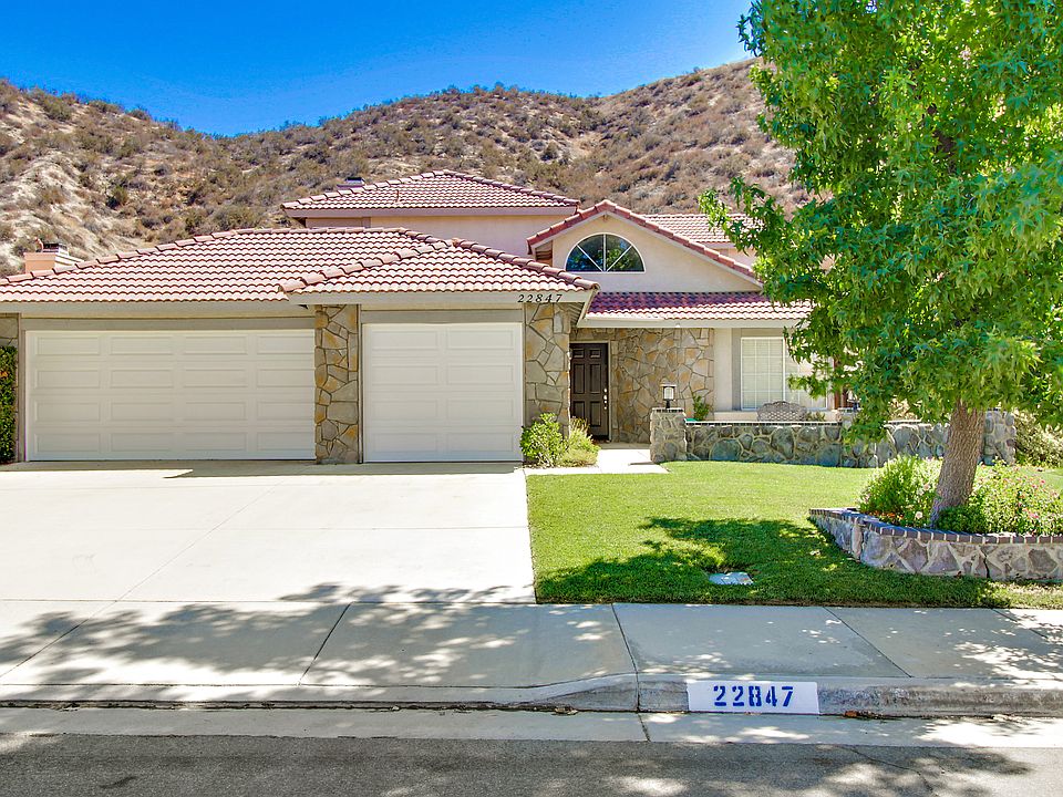 Nestled into the serene area of Wildomar near Lake Elsinore is a 2,245-SqFt home featuring a 4 bedroom, 3 bath, escape! With a large driveway and inviting patio, a sense of calm will simply wash over you. Upon entry, the cozy living room offers large slopping ceilings, pendant lights, and baseboard moldings. The family room has a brick fireplace and warm toned hardwood floors. A bright working kitchen is complete with tiled floors, built-in microwave, dishwasher, free standing range/oven, breakfast bar, granite countertops, and plenty of storage, making every day cooking adventures a delight. Plus, just off the kitchen is a bright hexagonal room flooded with light from its multiple windows and has a variety of uses. There's even a bonus room and laundry room on the first floor! A spacious and pleasant master bedroom includes two built-in closets and a private attached bath, complete with shower stall and tile bathtub. It's like having a mini retreat from the comforts of home! Behold the scenic backyard with its lush green grass and majestic hills in the distance, creating a picturesque environment! With a gem like this, every day is a vacation.