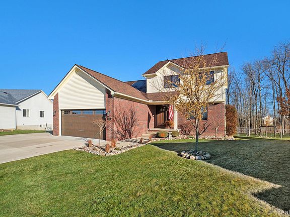 Better than new! Welcome to a tastefully updated 5 bedroom, 2.5 bath home offering over 2,700 square feet of inviting living space in a quiet cul-de-sac. The property sits on a half acre lot that is fully fenced, giving you the privacy and outdoor space many hope to find but rarely do. From the moment you pull into the expanded driveway, the curb appeal sets the tone. The striking wooden garage door with windows, the solid wood front door, and the black-trim windows create a modern, timeless look that makes the home feel special before you even step inside. Opening the front door feels like entering a place meant to be lived in and enjoyed. The main level feels warm and welcoming with a stone electric fireplace, luxury laminate floors, and modern paint. The kitchen is a true highlight, offering granite countertops, stainless steel appliances, and bright white cabinetry. It’s a space where morning coffee feels peaceful and preparing dinner feels effortless. The first-floor primary suite gives you both comfort and convenience, complete with a renovated full bath. Upstairs are four roomy bedrooms with new carpet, offering space for family, guests, or a home office. The finished basement features a dry bar, entertainment area, and workout zone, giving you room to unwind or stay active without leaving home. Inside and outside, the property truly shines. A spacious deck, brand-new cement patio, and firepit area create the perfect setting for gatherings and quiet nights alike. The powered shed blends beautifully with the home’s design and provides exceptional storage. Recent updates offer peace of mind, including a new roof in 2023 and a new air conditioner in 2023. Located in Atherton Schools, and the Davison school bus conveniently picks up right around the corner. This is a home that blends comfort, space, and thoughtful upgrades into an everyday lifestyle that feels both elevated and effortless. Come see it in person. You’ll feel the difference the moment you arrive.