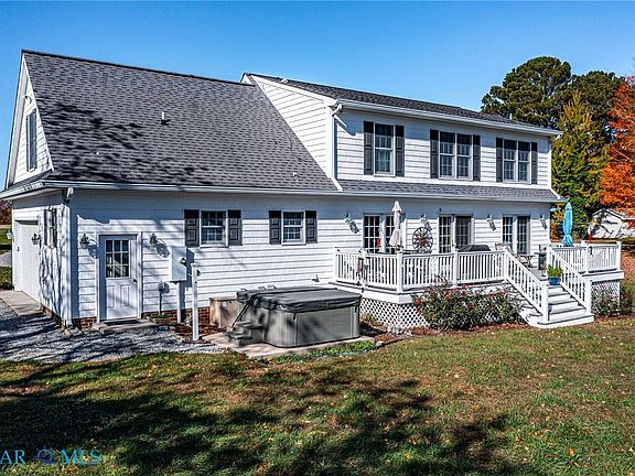 Beautiful Chesapeake Bay Waterfront Home Experience coastal living at its finest in this bright and inviting 3-bedroom, 2.5-bath home overlooking the Chesapeake Bay. With breathtaking sunrise views, a private sand beach, and your own dock with 3–5 ft mean water depth, this property is perfect for boating, fishing, crabbing, and oystering right from your backyard. Inside, the updated kitchen features quartz countertops, stainless steel appliances, and a porcelain sink, opening to sun-filled living spaces with oak floors throughout . The guest suite with en-suite bath offers comfort and privacy, while the upstairs bathroom has been beautifully updated. Enjoy the outdoors year-round — relax in the hot tub under the stars, BBQ on the deck, or watch herons, eagles, ospreys, and otters from your private waterfront retreat. Additional highlights include a newer first-floor heat pump, completely updated septic system, and a freshly painted garage. This home is immaculate. Whether you’re watching ships glide through the channel, reading by the fireplace, or simply sitting on the dock of the bay, this peaceful haven offers the perfect Chesapeake Bay lifestyle.