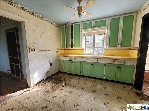 The home is located less than 10 min drive from downtown Victoria, offering 2 bedrooms and 1 bathroom with 2 living room spaces in the main building, and 1 bedroom and 1 bathroom in a separate building. Just right outside of city limit with a low tax rate and no restrictions. A large metal building can be handy when living on almost a half of an acre lot. The property needs work but it has plenty of potential.