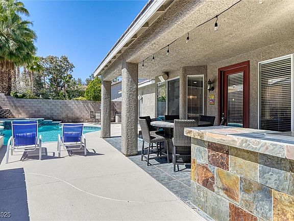 Experience elevated family living in this beautifully upgraded residence, perfectly positioned in one of Henderson’s most sought-after neighborhoods. Boasting four spacious bedrooms, including a luxurious first-floor primary suite, and three immaculate full bathrooms, this home blends comfort and sophistication with ease. Step inside to discover a thoughtfully designed interior, recently remodeled with contemporary finishes and style. Luxury vinyl plank flooring flows seamlessly throughout, setting the tone for a warm, modern aesthetic. The gourmet kitchen is a showstopper, featuring sleek updated cabinetry, quartz countertops, and a striking waterfall-edge island—ideal for entertaining or casual family meals. The flexible floor plan includes a cozy den or office, an expansive loft, a custom-designed primary walk-in closet, and a large media room—offering space for work, play, and everything in between. Step outside to your private backyard retreat, where resort-style living pool/spa