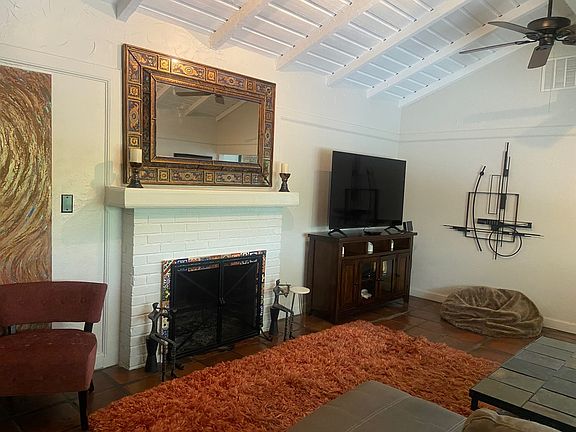 This is a classic Spanish style home built in 1940. This home sits on a large parcel and has a large back yard, A circular driveway is part of the large front lawn area behind high hedges. Citrus fruit trees add fragrance and ambiance to the side of the home. Big mountain views front and rear. A relaxing secluded pool and spa enhance the rear yard with a view capturing the mountains. Close to restaurants, shopping and hiking. The home is neighbored by other single family homes and while it is very close to the center of town, it maintains a quiet, calm, relaxing surrounding. Rental terms are month to month; home is unfurnished. No smoking inside the home. Water, trash and pool service paid for by owner.
