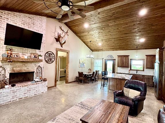 188 breathtaking acres of land perfect for hunters, nature lovers, or anyone wanting privacy with modern comfort. A main highlight of this property is a spacious barndominium that provides the perfect blend of rustic charm and modern convenience. Whether you need a full-time residence or weekend hideaway, this one is move-in ready. Enjoy total privacy while still being conveniently located 20 minutes from town. This property also features a pond stocked with bass, catfish, crappie, and bream. A peaceful river winds through the land, offering scenic views, wildlife corridors, extra opportunities for fishing, or simply enjoying the sound of flowing water. Thick timber, open plots, and natural water sources create ideal habitat for deer, turkey, and other game. Trails throughout the property make it easy to explore all 188 acres. If you've dreamed of owning a turn-key outdoor retreat, this is it. Don't miss the chance to own a piece of land this special!