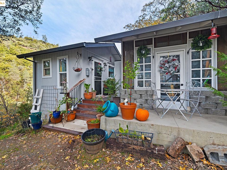 Discover the allure of simple living in this exceptional tiny home retreat, uniquely divided into two distinct buildings. This thoughtful layout enhances privacy while framing a central, covered outdoor living space—the perfect tranquil spot for morning coffee, evening relaxation, or entertaining guests. Situated on a generous one-plus-acre lot, the property offers a canvas of limitless possibilities for gardening, expansion, or enjoying the great outdoors. The elevated position affords breathtaking views and a direct connection to nature, complete with a dedicated pathway leading down to a seasonal creek. This serene location promises tranquility, deep connection to the natural world, yet remains only a short trip to local amenities and mountain adventures.