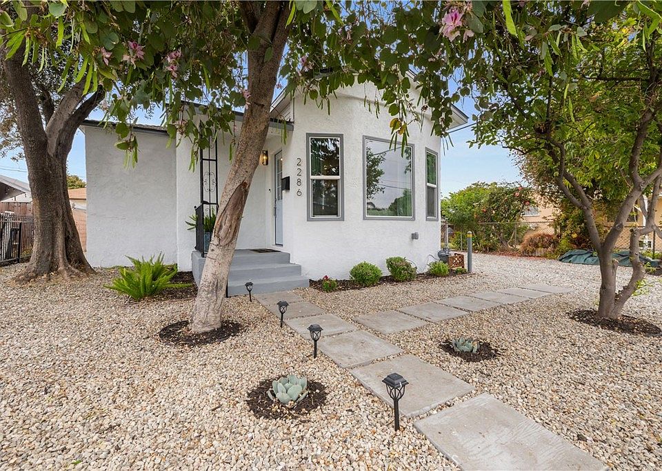 Stunning open floor plan, 3bd , modern bungalow home, remodeled and located in the hidden residential neighborhood of Commerce, Five-ten minute drive from Downtown L.A., Silverlake, Monterey Park & Montebello. Terrific drought tolerant curb appeal, charming dining/living room combo floor plan w/ pituresque bay window, 10ft high ceilings, Stunning kitchen w/ quartz counters, and state-of-the-art appliances. Custom cabinetry. Primary ensuite with private bathroom and beautiful barn door. Second bedroom offers ample living/closet space. Third bedroom provides many options as either an office or additional family room space. Upgraded dual pane windows and doors thru out, beautiful hardware thru out, custom tile work in both bathrooms. BONUS! WOW! WOW! Extra income potential wi/ the private backyard that has approved plans for an approx 500 sq ft ADU additional home and its still spacious enough for a pool or to make a custom patio/entertainment area. This home offers endless possibilities for any discerning buyer. Close to several major freeways, L.A. Live shopping, Arts and Business Districts, Casinos and many, many other amenities. Check out this hidden gem today.