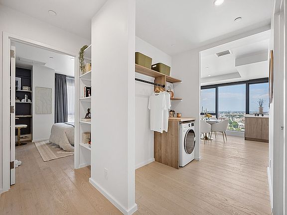 Wake up to breathtaking sunrise and city skyline views in this stunning two-bedroom, two-bath residence at Bayview Courtyard, a contemporary glass-façade condominium overlooking Brooklyn’s peaceful waterfront.