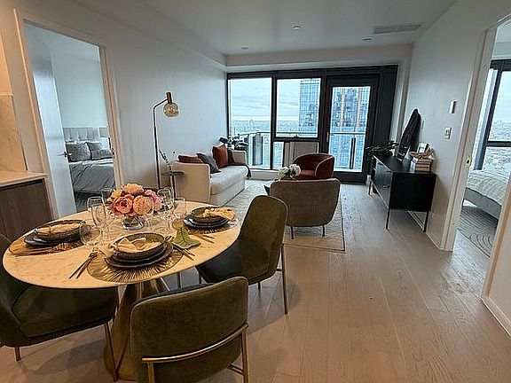Introducing a luxurious 9th-floor condo offering modern elegance, comfort, and convenience in one of the area’s most desirable buildings. This stunning home features 2 spacious bedrooms and 2 full bathrooms, with a thoughtfully designed layout spanning 948 sq. ft. of interior living space plus a 152 sq. ft. private outdoor terrace, for a total of 1,100 sq. ft. Enjoy an open-concept living and dining area with floor-to-ceiling windows, a modern kitchen equipped with a dishwasher, and in-unit washer and dryer for ultimate convenience. Residents enjoy access to premium amenities including a swimming pool, fitness room, and meeting rooms exclusively for unit owners. Monthly common charges of $774 include water and heat. This luxury condo offers an exceptional opportunity to own a sophisticated home with style, comfort, and convenience all in one.