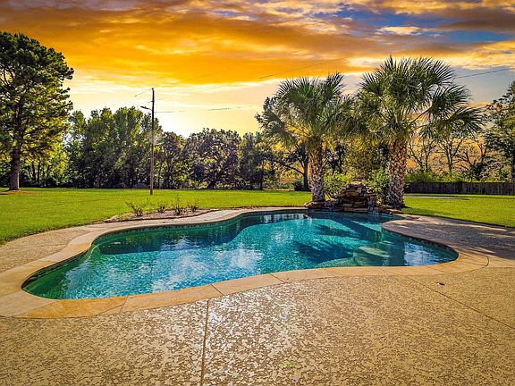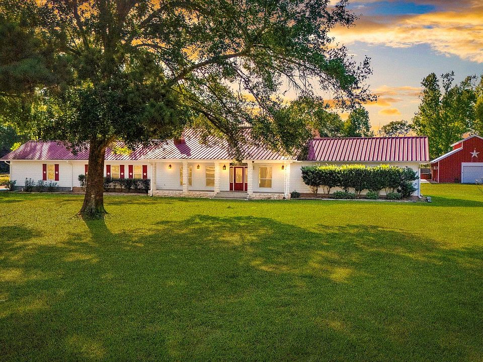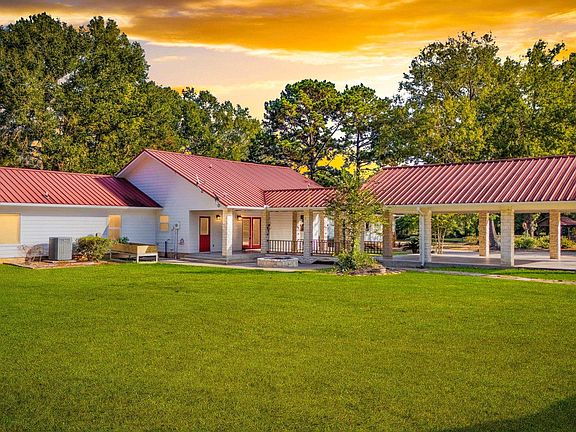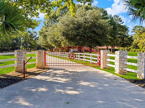 Country living at its best! Nestled on just under 8 acres in the highly sought-after FM 1988 area with quick access to Hwy 59, this exceptional property offers peaceful rural living without sacrificing convenience to town or the lake. From the gated entry and concrete driveway to the serene pond welcoming you home, every detail has been thoughtfully maintained. The spacious interior features an open-concept design with beautiful custom rustic woodwork, a stunning rock fireplace, stained concrete floors, a split floorplan, and **two primary suites** for added comfort and flexibility. Outdoors, enjoy covered front and back porches, a sparkling inground pool, and an impressive barn equipped with living quarters, game room, office, and horse stalls—ideal for hobbyists, livestock, or guests. With 4 bedrooms, 3 bathrooms, and an abundance of usable space both inside and out, this one-of-a-kind estate offers a rare opportunity to enjoy modern comfort in a true country setting.