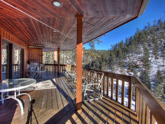 Black Hills creek property located on the Mickelson Trail/Mystic Trailhead featuring 3 beds, 3.5 baths, and 3,400 sq. ft. of living space. This home is situated on 1.41 acres with 360' views of the canyon & beautiful pines! One prideful owner of this Ranch-style (octagon design) home with wrap-around deck, which provides breathtaking views of the forest, canyon, and creek below. The main level features a real wood-burning fireplace with floor to ceiling Chicago-brick surround, vaulted ceilings, master suite with walk-in closet, a second bedroom, full bath, laundy room, and half bath. The kitchen boasts custom Riss cabinets and Corian countertops. The walk-out basement is perfect for entertaining with a stunning double-sided real wood-burning fireplace built with slate from the Lead Gold Mine. A 3rd bedroom, full bath, 38x38 sq. ft. family room complete the lower level. Major updates within the last two years include new heat pump, humidifier, water heater, and central air.