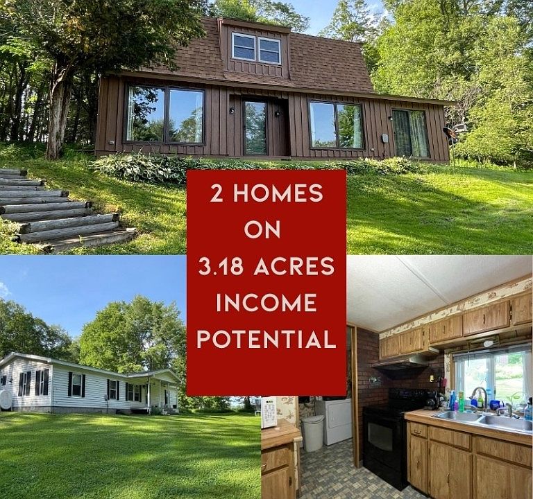 Opportunity Abounds!! When you enter this lovely park-like setting you will find two separate homes, each with its own driveway and yard. Live in one and rent the other for extra income. Another option is readily available space for the overflow of houseguests in the country. The primary home is a well built, well maintained 3 bedroom 2 bath two story house with a Dutch Colonial roof. The many windows provide expansive views of the great outdoors. The second home is a well maintained 3 bedroom 2 bath Double wide with an addition and a screened porch. Both homes are set well back from the road creating a quiet and peaceful country setting with easy access to the area's attractions in all directions. The yard and grounds are beautifully landscaped and well cared for. Each home has its own driveway and septic system. They share a well. Schedule your appointment today.