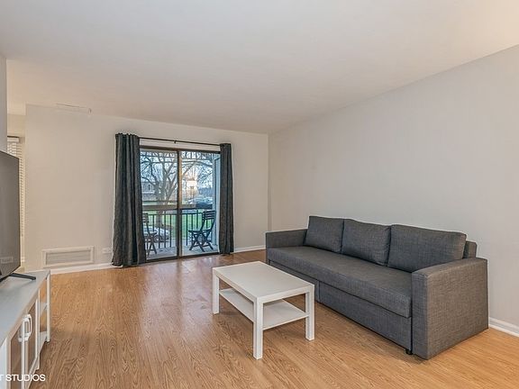 Welcome to your cozy retreat in Woodridge! This charming 1 bed / 1 bath condo blends comfort and convenience with modern touches throughout. Step inside and admire the laminate wood-look floors that flow seamlessly from the living room to the bedroom-easy care, durable, and adding a warm elegance to every space. The open concept living/dining area is bright and inviting, anchored by sliding glass doors that lead out to your private balcony, perfect for morning coffee, relaxing in the evening, or enjoying the fresh air. The kitchen offers the essentials and plenty of cabinetry, with room for your personal style updates. The bedroom is a restful space sized just right, with a generous closet for storage. The bathroom is clean and functional, plenty of light.