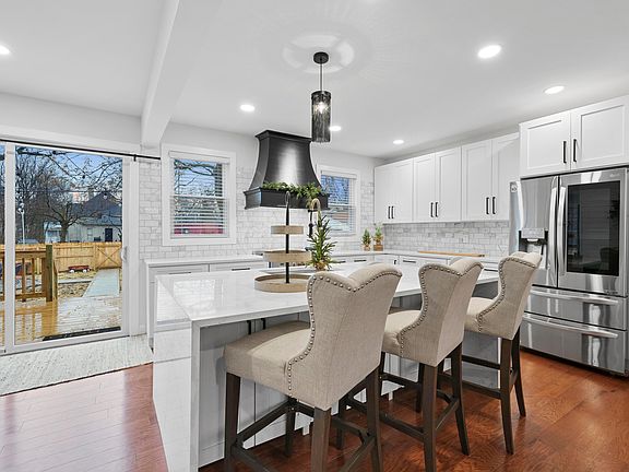 This house it filled with tons of living space for entertaining space, three exposed brick walls,kitchen with gas stove/oven, large island,, and coffe bar area.dinig room with bar/built in wine cooler. There is a backdoor/mudroom and a smaller room/office, a half bath completes the 1st level.