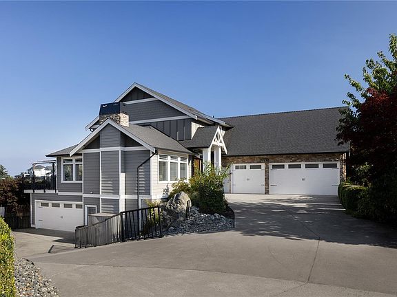 Perched high on Bear Mountain, 2287 Nicklaus Drive offers 4,597 sq. ft. of elegant living space with sweeping views of the valley, Mt. Baker, and the ocean. The main level highlights thoughtful design with a primary suite featuring a walk-in closet and luxurious ensuite, additional bedroom or office space, and an open-concept great room. A gourmet kitchen anchors the space, with easy flow to the dining and living areas and direct access to a spacious deck overlooking the valley. Upstairs, 3 additional bedrooms and a family room provide ideal space for family living. The lower level impresses with a legal 1-bedroom suite, gym, and rare car enthusiast’s dream: two driveways, parking for multiple vehicles, and garages with room for up to five cars & a hoist. Outdoor living is equally inviting with expansive patios, garden space, and unobstructed vistas. Steps from world-class golf, tennis, hiking trails, and resort-style amenities, this residence blends luxury, versatility, and lifestyle.