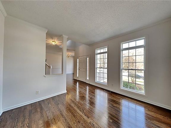 When entering the front door you will notice the natural light from the two story foyer makes the hardwood floors gleam. There is a convenient office space off the entry way. The kitchen has new quartz counter tops and luxury vinyl tile floors. The living area has an open feel with tall cathedral ceiling, glass door to the back deck, and a relaxing gas fireplace. The primary suite is on the main level and very spacious with dual walk in closets. The primary en- suite bathroom is lit by a large picture window and has a double vanity, and separate shower and soaking tub. The 3 secondary bedrooms are on the upper level and all have walk-in closets.