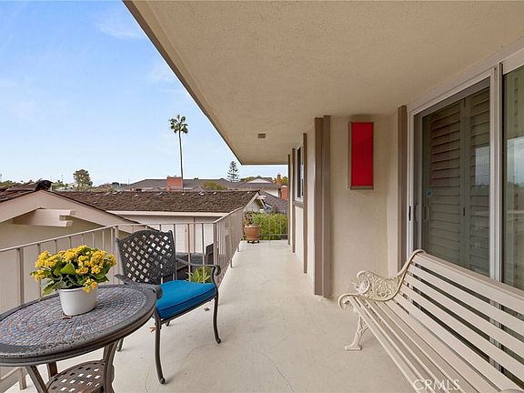 Great 2 bedroom 2 bath (1+3/4) upper condo with "lots of light" in the desire able New Horizons 55 plus community - convenient seat ride on stairwell to use so you don't have to walk up or down the stairs - first there is a front porch where you could watch the sunsets - step inside your new home on wood floors and see the the comfortable living room with a brick fireplace - plus a balcony with room for a table and chairs - great spot to relax. read a book and enjoy a glass of wine or an ice tea - remodeled kitchen with granite counters, stainless dishwasher and oven, lots of cabinets, recessed lighting and a breakfast counter - adjacent dining area on wood floors with a chandler for those formal meals - one bedroom with mirror closet doors - spacious primary bedroom with private balcony and bath - plus two closets with mirror closet doors and sitting desk - all electric like all units in this wonderful senior community - shutters + drapes + newer interior doors + vinyl windows + mirror closet doors - one assigned garage space - community club house, tennis courts, pool, spa, club house and 9 hole golf course (which you won't find in newer senior communities) - convenient to medical, shopping, restaurants, parks, the theaters, 15 to 20 minutes to the beach and reasonable freeway access - great opportunity to get in the highly desire able senior community - what are you waiting for?