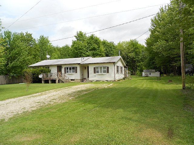 Lovely Country Ranch - 2 Bedroom updated home with newer carpeting, windows, and kitchen appliances. Remodeled kitchen with center island, lots of closet space, wood burning stove, lower level workshop and unfinished additional bedroom. 3 Heat sources: Wood stove, wood/coal furnace, and propane. 18'x14' outbuilding with cement floor, electricity, and water. Fenced chicken coop with nesting chickens, goldfish pond, grape arbor, fruit trees, and garden. Agricultural zoning, but single family use. Home warranty included.