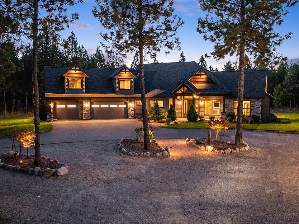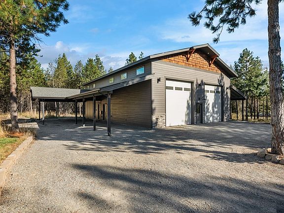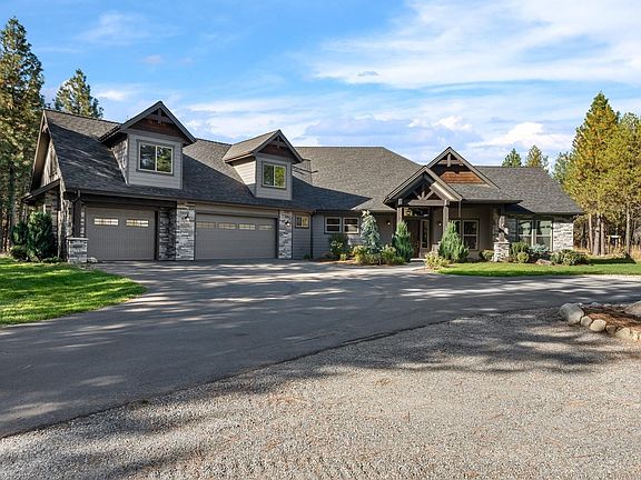 Welcome to Lone Mountain Estates, an exclusive community with 5-acre lots, paved roads, and easy access to Coeur d’Alene, Rathdrum, and Spirit Lake. This custom Timbered Ridge Parade of Homes entry is a masterpiece of design and craftsmanship. The main floor living concept features a custom kitchen with stainless gas appliances, commercial size refrigerator, a walk-in pantry, and two ovens. The luxurious master suite includes a sitting room, three-sided fireplace, patio access, dual walk-in closets, separate vanities, soaking tub, and a multi-head walk-in shower. Additional highlights include vaulted ceilings, covered patio, office, a Jack-and-Jill bath adjoining large 2nd and 3rd bedrooms, a huge versatile bonus room, a mudroom, a spacious laundry room with sink, and custom built-ins throughout. Finally, a large shop with 14’ doors, RV parking, an unfinished loft, and a two-bedroom, one-bath apartment. A large asphalt drive with turn around and plenty of parking for toys.