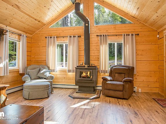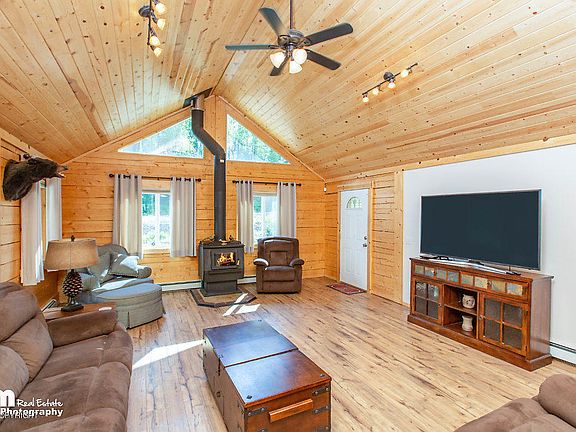 Welcome home to this fully FURNISHED, Log Home that backs to Marvro Lake! Inside you'll find beautiful Pine Tongue & Groove lined, vaulted ceiling & walls, open concept floor plan w/radiant heat & King Blaze wood stove, laminate flooring, solid core doors & solid wood trim! Stainless steel kitchen appliances add a modern touch while large windows allow lots of natural light! Private Airstrip!