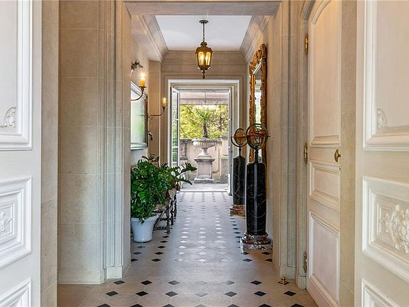 This stunning development was modeled after "Place des Vosges" in Paris. Each home is custom designed for the satisfaction of the discreet owners. This home will rival any chateau in France, as the owners made approximately forty trips to France to pick out everything for the home and make sure it was built in complete details of perfection: With a team of Peter Block as Architect, Brian McCarthy of New York as Designer and Bonner Construction as Builder, this masterpiece was created over a five-year building process. Enter through custom designed iron and glass doors into grand front to back hallway of limestone walls and marble floors to overlook large wrapping terrace of limestone with private lap pool, elegant French gardens, and Pavilion for entertaining. The floors and beams through the home came from an old factory that was torn down on the Erie Canal to customize the finish throughout the home. The lower level "bath house" room has limestone floors, Portuguese tile wall, and bronze accordion doors opening beautifully to the pool. The home comes equipped with a commercial sized elevator to all floors along with electronic blinds and shades for the windows, walls are made of Venetian plaster, inlayed oak floors, zinc gutters, slate roof, and real stucco. The mantel and paneling throughout the home was brought in from France and custom designed to the owner's personal discretion. The Grand Salon has antique mirrors to accentuate the detail paneling and the gold leaf finish. The formal dining room was modeled after the American Embassy dining room in Paris to total perfection. Enjoy cooking in a kitchen the has every finish and appliance that a professional cook could only dream of including a "La Cornue Range". The third floor is totally taken for the master suite with his and her baths, dressing room, and sitting room. Live here in this beautiful home with a rooftop terrace where every room has a view of either the central courtyard or the four-acre Private Park only enjoyed by the 17 homes in The Enclave.