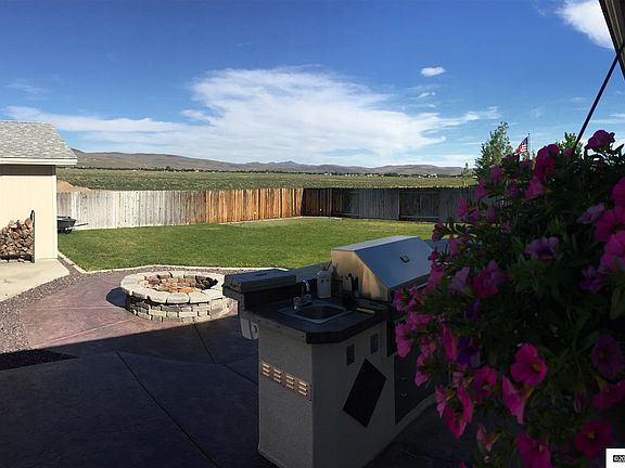Beautiful Spanish Springs property!! The paved driveway to the backyards leads to a additional 2.5 car garage or 2 car garage with workspace. Each side of this home offers RV parking. The backyard has a lighted circular fire pit, outside speakers, stamped patio and an outdoor grill with sink for the perfect outdoor entertaining. This home back to a large undeveloped area leaving a bit of privacy for a new owner. Throughout the home you will notice a unique wood ceiling upgrade and plantation shutters.