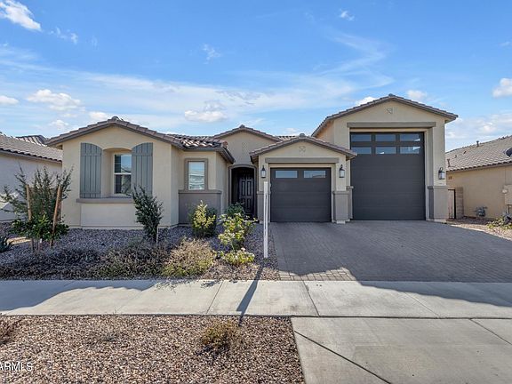 Located in the highly sought after community of Spur Cross, close to everything Queen Creek has to offer! From the moment you arrive, you're sure to be impressed. Built in 2021, complete with an incredible floor plan and RV garage. Walking through the front door you'll immediately notice the pride of ownership and upgrades throughout, including beautiful tile plank flooring. The gourmet kitchen offers a gas range and double oven with a large walk-in pantry and the master retreat is the perfect place to unwind after a long day with a completely remodeled master bath. The layout offers a bonus space perfect for a game room or office and a huge mudroom. Outback you'll find a tropical oasis with large gazebo on pavers with passion fruit vines, citrus, mango and banana trees along with oth tropical plants, including grape trellis and vegetable garden. Not to mention, there is a massive garage complete with epoxy floors and a space for your RV! The beautiful community offers a pool, spa, children's playgrounds, and more. Don't miss this one!