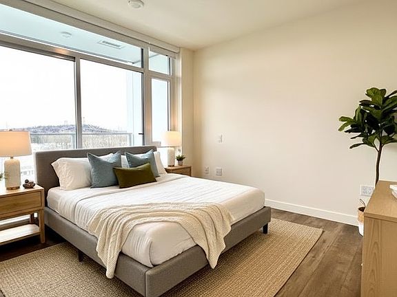 Spacious 798 sq ft interior + 339 sq ft entertainer's balcony with stunning water and mountain views