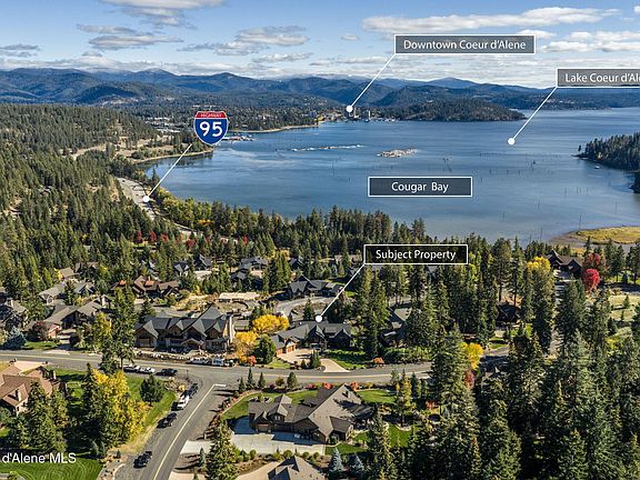 Impressive and 'turnkey'' custom home in Coeur d'Alene's most sought-after neighborhood only 1.7 miles from CDA on paved and maintained county roads! Filtered Cougar Bay Lake views and tremendous outdoor living from this spacious 5 bedroom, 5.5 bath, 5,543 SF award winning former Parade home with finished daylight walkout basement built in 2006. A dramatic great room with floor to ceiling rock fireplace, T & G ceiling, open air Nano doors, gourmet island kitchen and impressive dining area. Spacious main level primary suite with private office, main level caretakers suite, and large covered main level deck spanning the entire length of the home. Downstairs walkout lower level with, sauna, and large, covered patio with hot tub to enjoy the impressive landscaping. 3-car finished and heated garage, lots of storage areas and all the bells & whistles you would expect in a home of this caliber. A great value!