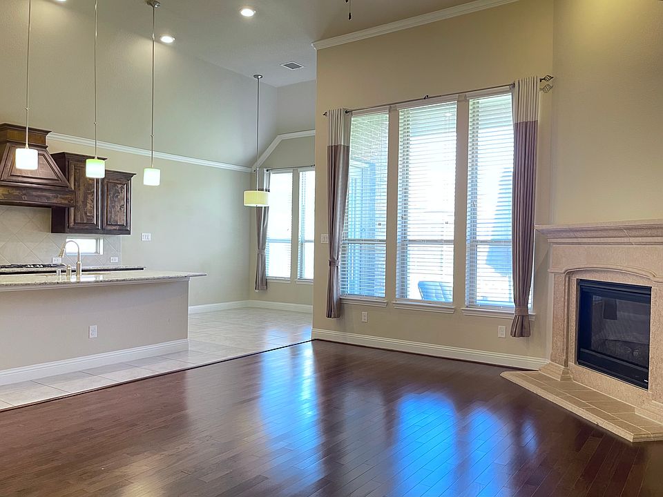 Welcome to this beautiful 4-bedroom, 3.5-bath home featuring soaring ceilings and a thoughtful split-bedroom layout for added privacy, with the master retreat and a secondary bedroom conveniently located downstairs. Elegant hardwood floors flow throughout, and the gourmet kitchen is appointed with granite countertops. Upstairs includes a spacious game room, media room, and half bath, along with two bedrooms connected by a Jack and Jill bath. Ideally situated near HWY 121 and just 13 miles from DFW Airport, this home is zoned to highly acclaimed Lewisville ISD, with the elementary school within walking distance. Enjoy premier shopping, dining, and entertainment at nearby Grandscape. Community amenities include a sparkling pool and playground perfect for family fun and relaxation. Walkthrough video available search address on YouTube.