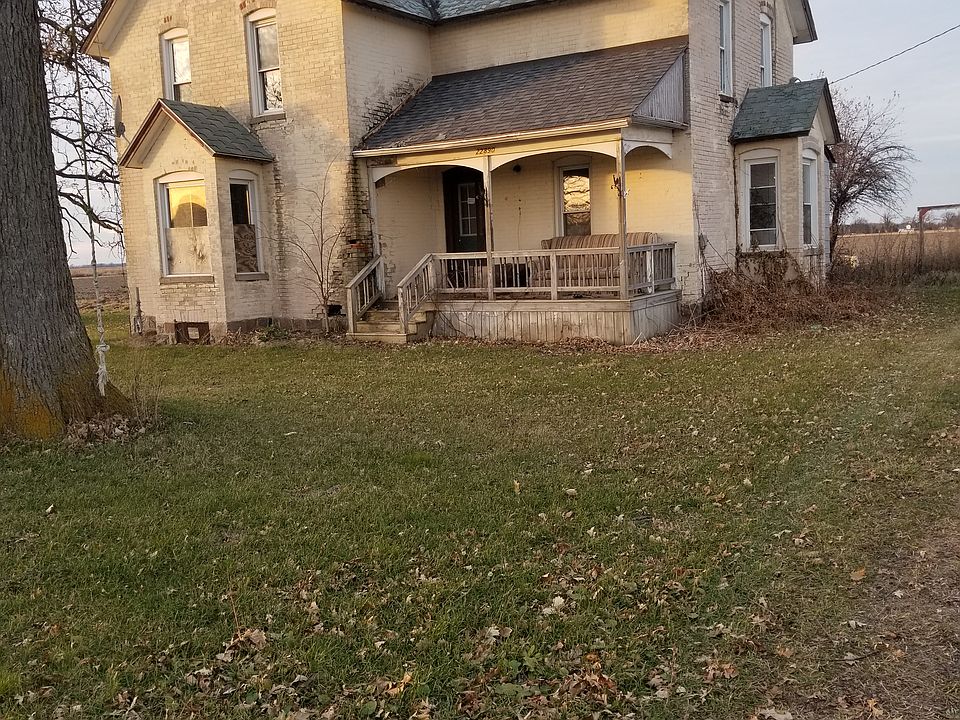 Large Brick Farm House that needs some TCL. Quiet Country setting with small yard to maintain .31 of an acre. Large Kitchen, hardwood flooring, upstairs has 4-5 rooms, 1 car detached garage and 1 small coop.