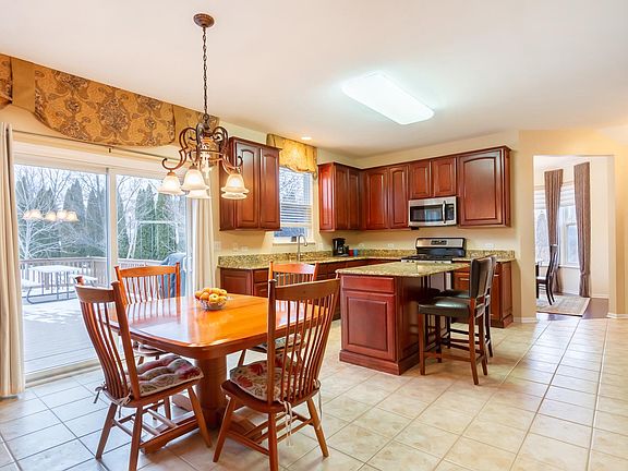 Stunning former model home in Timber Trails with private views! You will not be lacking natural light with an abundance of large windows throughout the home. The heart of the home - the kitchen- boasts gorgeous cherry cabinets, stainless appliances, granite tops, breakfast bar island, pantry with frosted glass, and an eating area that opens to the deck. Open concept into the family room offering a 4 foot upgraded extension wrapped in a large bank of windows with floor to ceiling built-ins, and a gas fireplace for the colder months. The formal dining room also offers an upgraded bay window bump out for additional space and natural light. Convenient first floor office/library with built-in shelving. Completing the first floor is a powder room and laundry. The grand staircase welcomes you to the second floor to a generous vaulted master suite with French doors opening to the luxurious updated private bath. 3 additional large bedrooms and hall bath complete the second floor. Yes there is more....You will enjoy the incredible finished basement that includes a large kitchenette with island, rec room and space that could be used as a bedroom for a great in-law arrangement. In the warmer months, enjoy time on the tremendous 25x25 ft deck overlooking the custom brickwork and oversized tree-lined lot offering privacy from neighbors. The beautiful landscape offers a sense of serenity. Pick up the walking path to Timber Trails Park or Burnidge Forest Preservice. Easy access to shopping/Dining along Randall Rd, Metra, and I90. Much of the big work has been done: Roof, HVAC, Upstairs windows, leaves nothing to do but move-in.