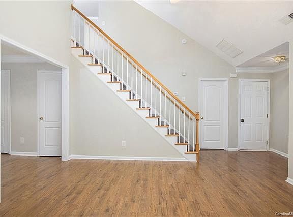 Built in 2002, this Matthews two-story offers a porch, and a one-car garage. Upgraded features include fresh interior paint, new carpet and laminate flooring in select rooms, and a new stainless steel cooking range. Community park and common area maintenance are part of the Crestdale Crossing Homeowners Association. Home comes with a 30-day buyback guarantee. Terms and conditions apply.