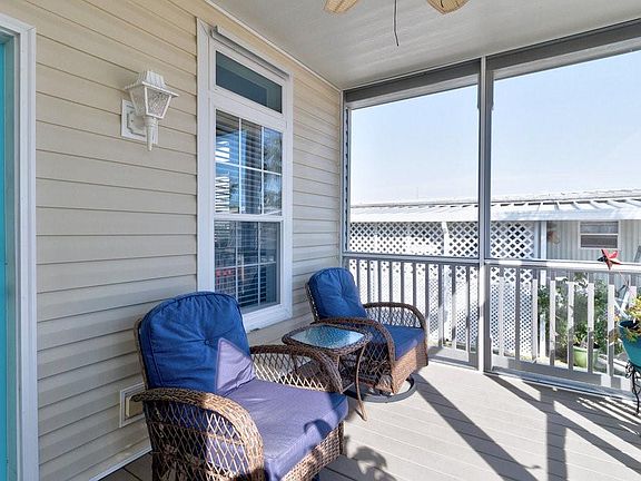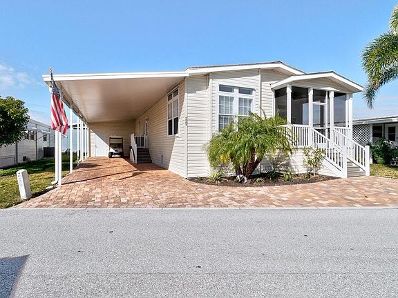 Fairlane Harbor, a 55+ community, offers a blend of relaxation & social activity for those seeking either a laid-back or engaging lifestyle. Nestled alongside the Indian River Lagoon, you’ll find a tranquil atmosphere where you can relax by the pool & enjoy the beautiful surroundings. This 2017 Jacobson home is spacious & thoughtfully designed with 2 bedrooms, 2 baths, + a den, offering 1,569 sq. ft of living space. The kitchen is a chef's dream, featuring transom windows, crown molding, recessed lighting, granite countertops, tile backsplash, & SS appliances. The laundry room is both functional & convenient with a utility sink & ample cabinets. Outside, you'll find a brick paver driveway, covered parking, a screened front porch, adding both charm and practicality to this beautiful home.