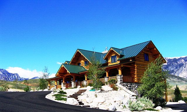 Custom built log home on 136 private acres next to Shoshone National Forest.The welcoming foyer leads to the living room w/dramatic mountains views w/windows spanning 2 stories. Native river rock fireplace & a massive elk chandelier. 4 bedrooms, 5 baths with features such as spanish tile, granite, marble and custom woodwork. A meadow area has year round water. Abundant wildlife in the area.