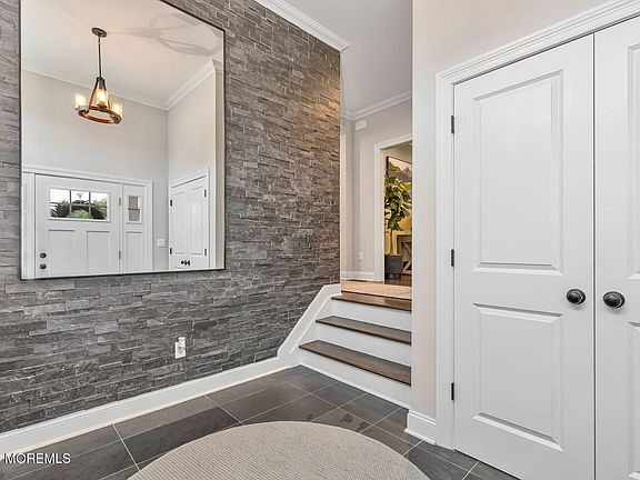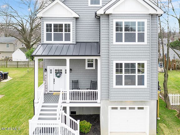 Prepare to be impressed—this is the one you've been waiting for! This 2-year young custom colonial, built to FEMA standards, offers over 2700 sq. ft. of elegant coastal living with quality craftsmanship and upgrades throughout. Just minutes to the beach, marinas, NYC Ferry, train, and GSP, this home delivers comfort, convenience, and style. From the moment you arrive, you'll notice the rocking chair, front porch and professional landscaping. Inside, the welcoming foyer leads to a bright and open floor plan with gleaming hardwood floors, crown molding throughout, and custom plantation shutters for that perfect blend of charm and function. The first floor boasts a great room with a gas fireplace and custom mantle, a formal living room, and a gourmet eat in kitchen featuring quartz countertops, stainless steel appliances with downdraft range hood, subway tile backsplash, abundant cabinetry, and a large island ideal for entertaining. Upstairs on the second floor, you'll find 9' ceilings, a spacious laundry room, a full bath with double vanity, three generously sized bedrooms, and a luxurious master suite complete with walk-in closet and a spa-like bath. Other notable features include a walk-up third floor, 2-zone HVAC, tankless hot water heater, a double wide concrete driveway, epoxy-finished garage floor, and a 1,000 sq. ft. basement with a one-car garage. With an 8-year new home warranty and exceptional attention to detail, this home truly has it all.
