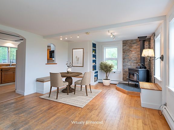 At its heart stands a fully restored 1835 farmhouse, thoughtfully relocated to its current full foundation in 1988. Facing south, the home is filled with natural light and showcases bonus mountain views. Inside, you'll find 3 bedrooms, 1.5 baths, warm wood floors, a cozy wood stove, and charming built-ins that highlight its timeless character. Two additional flexible rooms provide space for offices, guest accommodations, or creative pursuits, with further potential in the basement.