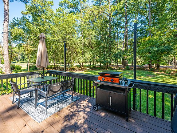 Wood-burning fireplacePrivate balconyBrick homePeaceful wooded surroundingsCeramic and hardwood floorsShaker-style cabinetsDeck overlooking tall pines
