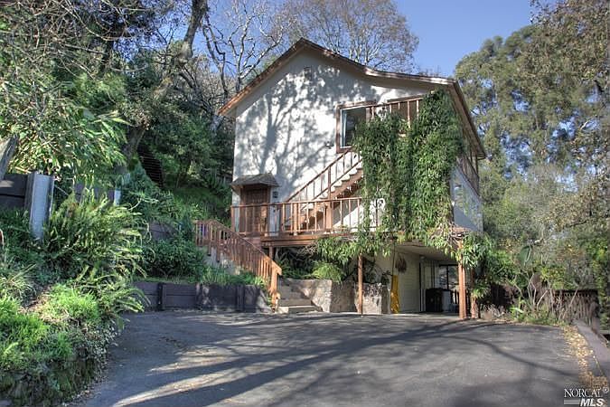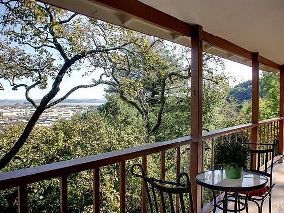 Situated in a very private location,this lovely home has amazing panoramic bay views and is serene and tranquil surrounded by nature. Open plan light & airy kitchen and dining, a gas fireplace in the living room and sliding glass doors to an expansive deck. A sun room adjoins 2 good sized bedrooms and tons of storage! Additional usable basement area is great for a hobby room! Well maintained landscaping, fruit trees & whimsical artwork!