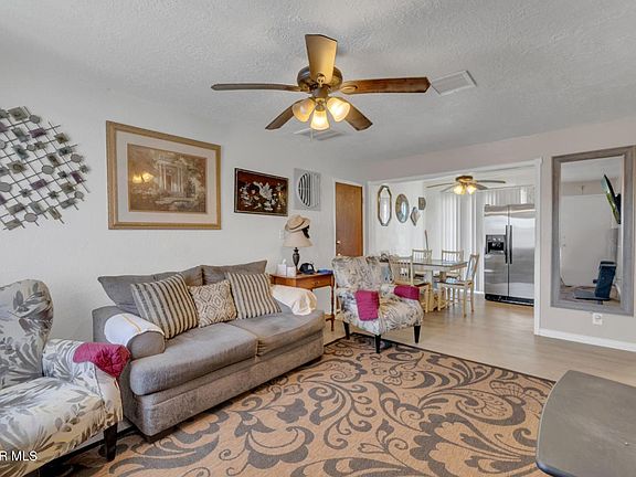 Gated frontage with a stone-and-metal fence frames this charming Town & Country Village home. The exterior showcases its brick construction and welcoming façade. Inside, you'll find a cozy living area, a kitchen with plenty of cabinetry, and a dining space for everyday meals. The home offers 3 bedrooms and 1.5 baths, including a master bedroom with its own private bath and walk-in closet. Refrigerated air keeps the space comfortable year-round. The backyard is huge perfect for future projects, gatherings, or creating your ideal outdoor retreat. A great opportunity to make a spacious, well-located home truly your own!