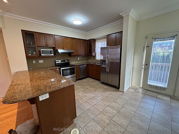 Available Immediately. Discover this sun-filled, rare end corner unit in a highly sought-after neighborhood! Featuring 9-ft ceilings, hardwood floors, and crown molding on the main level, this home blends elegance and comfort. The modern kitchen boasts granite countertops, a glass tile backsplash, and plenty of storage. Enjoy the cozy gas fireplace, pot lights throughout, and a beautifully interlocked front and backyard for easy entertaining.The primary suite includes a luxurious ensuite bath with double sinks and a glass-panel shower. Conveniently located - just a short walk to TTC, medical centers, home daycare, and just minutes to Warden Subway Station.