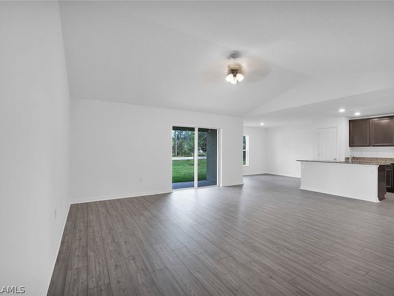 Home is complete and move in ready. Functionality meets beauty in the Brickell floor plan, proudly presented by Mirror Lakes. This new, one-story home features an open-concept entertainment space, 3 bedrooms and 2 full bathrooms as well as a bonus room/den. Unbelievable upgrades including energy-efficient Whirlpool® appliances including a refrigerator with ice maker, spacious granite countertops, 36” upper cabinets with crown molding, an undermount kitchen sink, Moen® faucets, a convenient outlet with USB charging capability, brushed nickel hardware and an attached two-car garage with a Wi-Fi-enabled garage door opener are all included upon moving in. The Brickell showcases a master suite complete with a walk-in closet, full bathroom and plenty of vanity space. A covered back patio and beautiful front yard landscaping and a beautiful finish to this home’s exterior. In addition, Mirror Lakes offers residents easy access to the best shopping, dining and entertainment Fort Myers has to offer.