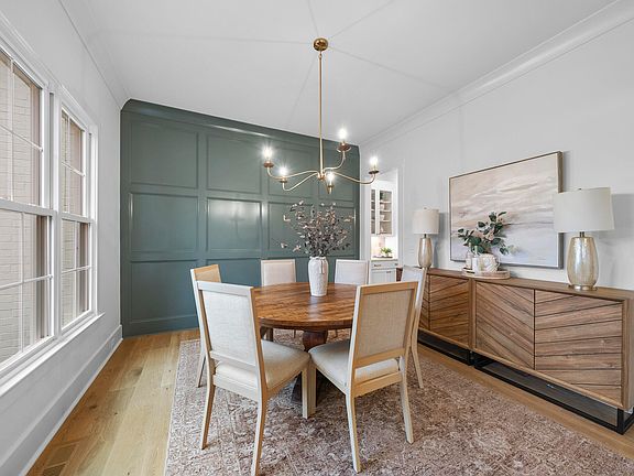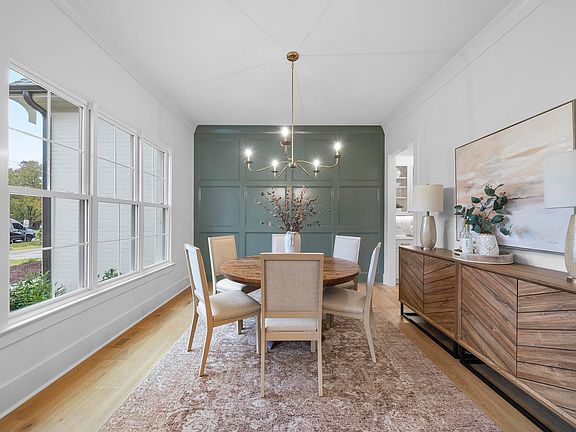 Custom-built on a pool-ready lot by Woodard Builders of the Triangle in established Eden Forest, this stunning home blends timeless craftsmanship with modern luxury. Designer lighting and hardwoods flow throughout the main living areas, leading to a showstopping chef's kitchen featuring quartz countertops, custom-painted cabinetry to the ceiling with cove crown, an oversized stained island with barstool seating, elegant tile backsplash, and Thermador appliances including a 5-burner gas cooktop, convection oven, microwave, and Fisher & Paykel panel-style refrigerator. The kitchen opens to a sun-filled breakfast area with triple windows and full lite glass door that invite you to the screened porch and paver patio—perfect for effortless indoor-outdoor entertaining. A separate formal dining room with butler's pantry access sets the stage for elegant gatherings, while the family room impresses with a custom fireplace surrounded by built-ins, stained floating shelving, accent windows, and exquisite trim detailing. The primary suite is a sanctuary with a tongue-and-groove ceiling accented by painted beams, hardwood flooring, and a designer chandelier leading to a spa-like bath with dual vanities in champagne gold, a stunning tile surround shower with dual rain heads and benches, and a spacious custom walk-in closet. Completing this masterpiece are a third-floor recreation room, three-car epoxy-finished garage, tankless water heater, HERS Score of 59, and every thoughtful detail for luxurious living at its finest.