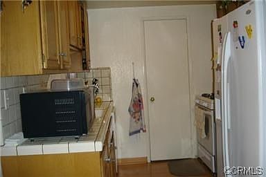 Small gated complex with 7 units in all. Spacious two level unit. County records indicates 2 bedrooms, but it has 3 bedrooms in all. All bedrooms are at the upper level. Good size living room with cozy fireplace. Small size kitchen leads to the garage. All wood floors in the living and dining area. Carpet in the upper level. Master bedroom with attached bath.