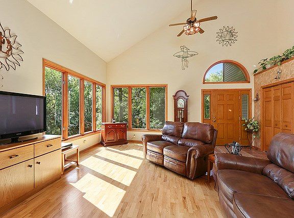 Looking for Related Living, In-Home Nanny or Health Care, as well as Home Business Wing? This 5+ br, 4 ba, offers so much! Gourmet Kitchen, 2 master suites, full walkout lower level home. So Very Unique, Custom built on 2 lots, so private, yet in the heart of Lemont! You'll feel like you're in heaven... enjoy this nestled in quiet, peaceful, wooded splendor...on almost an acre of landscaped beauty, great old oak trees, and a winding creek below. You can enjoy entertaining inside or out on the many outdoor & indoor spaces. Enter the sun filled living room, stunning views from every window in the home, full wall fireplace, vaulted, beamed ceiling; hardwood floors throughout. Kitchen: SS appliances, 42" cabinetry, granite counters, stone backsplash. Spacious master suite 1st fl. Spa-like luxury bath & its own balcony. 3 other nice sized brs on the 2nd flr. The lower level walkout expands the living space w/ another fireplace, a 5th br, Great room, 2nd master, home office, 2nd Laundry rm!