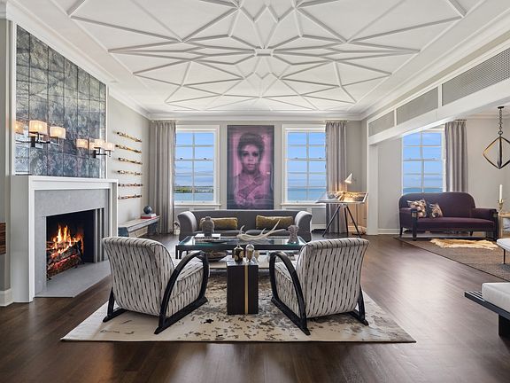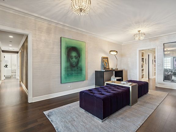 Welcome to 229 E. Lakeshore Drive #8E, the exquisite residence designed and owned by award-winning designer Donna Mondi. This stunning 3,600-square-foot co-op, overlooking Lake Michigan and Oak Street Beach, offers the perfect blend of luxury, style, and unparalleled craftsmanship. The home features 3 large bedroom suites, 3 1/2 bathrooms, a family room off the kitchen, large laundry room, office/den, gorgeous oval shaped dining room and large living room. Every detail reflects meticulous design, with sophisticated finishes and custom elements throughout. The living room boasts Holly Hunt fireplace sconces, an Ann Sacks antique mirror, and a custom plaster ceiling, while the oval dining room features custom plaster high gloss wall finish, Maya Romanoff ceiling paper and a Jean de Merry chandelier that evokes "dining under the stars." The kitchen is a true showpiece, featuring custom lacquered fumed eucalyptus, polished nickel, and hand-painted cabinetry by New Style Cabinets. Highlights include a custom blacked hood with polished nickel detailing, Calia Stone Explosion White Quartzite counters with a floating bullnose art ledge, and bespoke hardware by Donna Mondi Interior Design. High-end appliances include a 48" Monogram refrigerator, wine cooler, steam oven, and a 48" Bertazzoni gas range with brass accents. Lit glass cabinets, walnut interiors, door-activated pantry lighting, and a custom Urban Electric island pendant complete this beautifully designed space.The gorgeous bathrooms are outfitted in Calacatta marble with Rohl and Perrin & Rowe fixtures, and the powder room shines with silver-leaf ceiling details and luxurious finishes.This extraordinary home has received prestigious accolades, including Luxe's Red Award, a place among Andrew Martin's Top 100 Designers in the World, and features in Modern Luxury and Luxe. Two HUGE private storage rooms! Located in one of East Lake Shore Drive's finest co-op buildings, this residence offers timeless elegance in a coveted location. *ALSO AVAILABLE FURNISHED