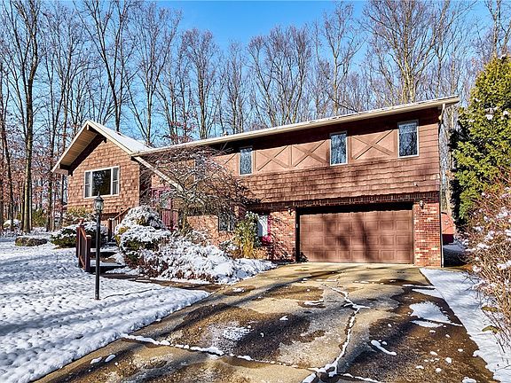 Welcome to your new haven, where you're greeted by a spacious living room and a large window offering a stunning front view. This charming four-bedroom, two-bathroom all-brick home sits on a one-acre lot surrounded by trees, radiating warmth and functionality. The dining room seamlessly connects to the living room and kitchen, fostering an open and inviting atmosphere. Step onto the deck through the sliding glass door to enjoy beautiful views, complemented by a yard adorned with diverse perennials for added natural allure.